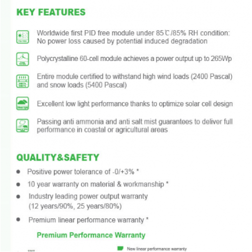 Hücre Gücü: 5 busbarlı yüksek güce sahip ücreler. Kare Kod Sistemi: +5 toleransa sahip panellerin güneşsimülatöründeki gerçek güç ölçümlerini karekodla görüntüleme kolaylığı.